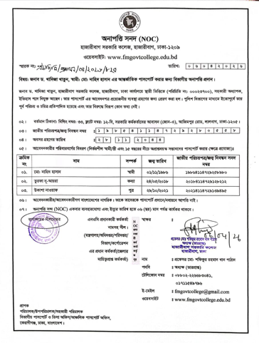 NOC- জনাব ড. খাদিজা খাতুন