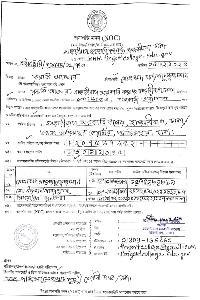 1) NOC- জনাব রুমকি আক্তার     2) NOC- জনাব ড. খাদিজা খাতুন     3) NOC - জনাব তিন্নি সাহা     4) একাদশ-দ্বাদশ শ্রেণীর ক্লাস রুটিন     5) NOC- জনাব আমেনা বেগম     6) NOC - জনাব রায়হানে জান্নাত     7) NOC- জনাব ফরিদা সুলতানা     8) প্রত্যয়ন পত্র     9) শ্রদ্ধেয় শিক্ষকদের মৃত্যুতে শোকবার্তা     10) শোকবার্তা     11) NOC- জনাব মুনসী হুমায়ুন কবির     12) NOC- জনাব মোঃ জামিল হোসেন     13) এইচ এস সি পরীক্ষা ২০২৫ এর ফর্মপূরণ বিজ্ঞপ্তি     14) Office Order for Md. Zahidul Islam     15) Office Order for Md. Yeadul Islam Shaikh     16) বার্ষিক ক্রীড়া প্রতিযোগিতা ২০২৪ ..     17) NOC- জনাব মো. রাশিদুজ্জামান.     18) NOC জনাব ফারুক আহাম্মদ, সহযোগী অধ্যাপক, বাংলা     19) NOC জনাব মোছাঃ ইসরাত জাহান মনিকা, সহকারী অধ্যাপক     20) NOC - জনাব হাফসা আক্তার     21) Class Routine 2024 from 01, Sep-2024     22) বার্ষিক ক্রয় পরিকল্পনা ২০২৪-২০২৫     23) ২০২৪-২৫ শিক্ষাবর্ষে একাদশ শ্রেণীর নির্বাচিত শিক্ষার্থীদের ভর্তি কার্যক্রম প্রসঙ্গে     24) NOC of মো: জাহিদুল ইসলাম     25) ২০২৪-২০২৫ শিক্ষাবর্ষে একাদশ শ্রেণিতে ভর্তি সংক্রান্ত বিজ্ঞপ্তি     26) NOC of মোসা: জিনাত রেহানা     27) NOC জনাব লায়লা আরজুমান্দ বানু     28) ২০২৪-২০২৫ শিক্ষাবর্ষে একাদশ শ্রেণিতে ভর্তি সংক্রান্ত     29) নৈতিকতা কমিটির আয়োজনে শিক্ষকদের প্রশিক্ষণ     30) অভিভাবক সমাবেশ     31) বাংলা নববর্ষ- ১৪৩১ বঙ্গাব্দ     32) মহান স্বাধীনতা ও জাতীয় দিবস-২০২৪ উদযাপন সংক্রান্ত     33) ২৬মার্চ মহান স্বাধীনতা ও জাতীয় দিবস-২০২৪ উদযাপন রচনা ও কবিতা আবৃত্তি প্রতিযোগিতা সংক্রান্ত     34) দ্বাদশ শ্রেণির শিক্ষার্থীদের রেজিস্ট্রেশন কার্ডে স্বাক্ষর প্রদান সংক্রান্ত     35) জাতির পিতা বঙ্গবন্ধু শেখ মুজিবুর রহমান এর ১০৪তম জন্মদিন ও জাতীয় শিশু দিবস-২০২৪ উদযাপন সংক্রান্ত     36) জাতির পিতা বঙ্গবন্ধু শেখ মুজিবুর রহমান এর ১০৪তম জন্মদিন ও জাতীয় শিশু দিবস-২০২৪ উপলক্ষে রচনা ও চিত্রাংকন প্রতিযোগিতা সংক্রান্ত     37) ঐতিহাসিক ৭ই মার্চ দিবস-২০২৪ উদযাপন সংক্রান্ত     38) ফরিদা সুলতানা_NOC     39) ক্যাম্পাসে পরিষ্কার পরিচ্ছন্নতা কার্যক্রম সংক্রান্ত     40) একাদশ শ্রেণির শিক্ষার্থীদের অভিভাবক সমাবেশ ‍সংক্রান্ত     41) বসন্তবরণ ও পিঠা উৎসব-২০২৪     42) একাদশ শ্রেণির শিক্ষার্থীদের কলেজে ৮০% উপস্থিতি নিশ্চিতকরণ     43) একাদশ ও দ্বাদশ শ্রেণির শিক্ষার্থীদের কলেজে নিয়মিত উপস্থিতি সংক্রান্ত     44) আর্থিক ব্যবস্থাপনা শীর্ষক অভ্যন্তরীণ প্রশিক্ষণ     45) শিক্ষক অভিভাবক মতবিনিময় সভা     46) শৃঙ্খলা ও পরিষ্কার পরিচ্ছন্নতা কমিটির সদস্যদের যথাসময়ে উপস্থিতি নিশ্চিতকরণ     47) জাতীয় শুদ্ধাচার কৌশল পরিকল্পনার অংশ হিসাবে মতবিনিময় সভা (৩য় কোয়ার্টার)     48) মোসাম্মৎ কামরুন রাহান NOC     49) শারমিন আজাদ NOC     50) সালেহা আক্তার NOC     51) শাহানা বেগম NOC     52) একাদশ-দ্বাদশ শ্রেণির ক্লাস রুটিন ২০২৩